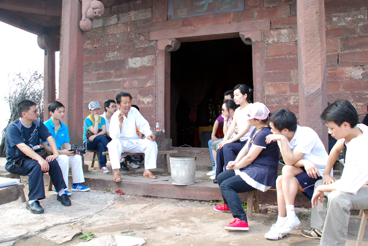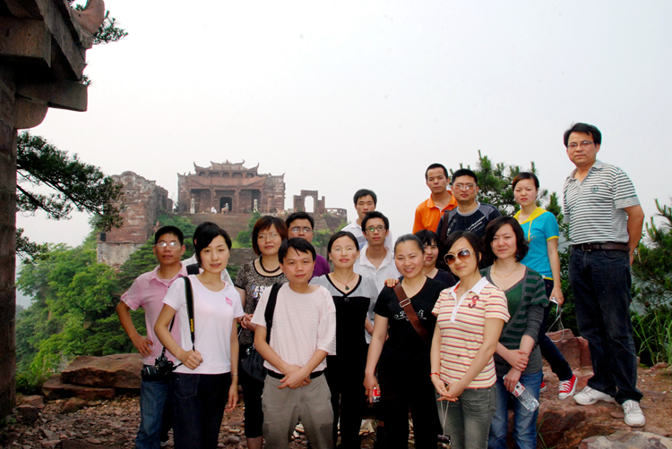 經(jīng)過兩個多小時攀登,我們終于到達山頂,站在“星德山門”的上坡處回頭望去,眾多山嶺已在我們腳下,山風將云霧在山脊的兩邊吹得轉(zhuǎn)來轉(zhuǎn)去,讓山脊擺出了許多優(yōu)美的造型。過觀音殿,登百步梯,踏舍身巖、經(jīng)文昌閣,繞百子堂,星德山真正的主人——星子宮出現(xiàn)在我們面前。星德山是一座道教名山,人稱“道興紫覆之地”,與譽為“中國南武當”的慈利縣五雷山隔山相望,互為犄角,山中自然景觀與人文景觀交相輝映。休息了一會后,我們便開始欣賞山上的風景,同事們都被這美麗而壯闊的風景所吸引,直到要下山了還依依不舍不愿離去。