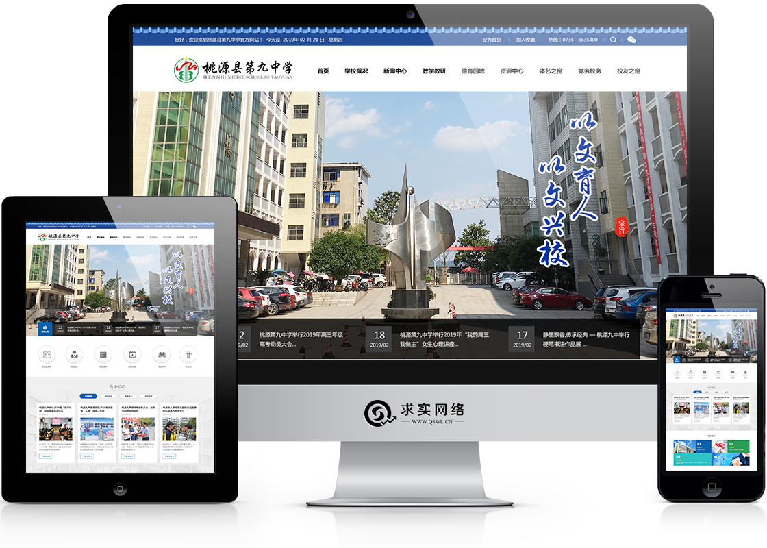 桃源縣第九中學坐落在桃源縣城漳江鎮(zhèn)沅水之濱,創(chuàng)建于1982年,前身為桃源縣城關中學,1999年晉升為市級示范性中學?,F(xiàn)有教學班67個,學生3940人,教職工324人。 學校校園面積70余畝,教學樓、電教樓、學生公寓樓、學生食堂等教學生活設施齊全,儀器室、實驗室、圖書室均達國家二類標準。近年來,投入1000多萬新建了高標準運動場,重修了校門和高三教學樓,辦學條件全面改善,校園環(huán)境更加宜人。